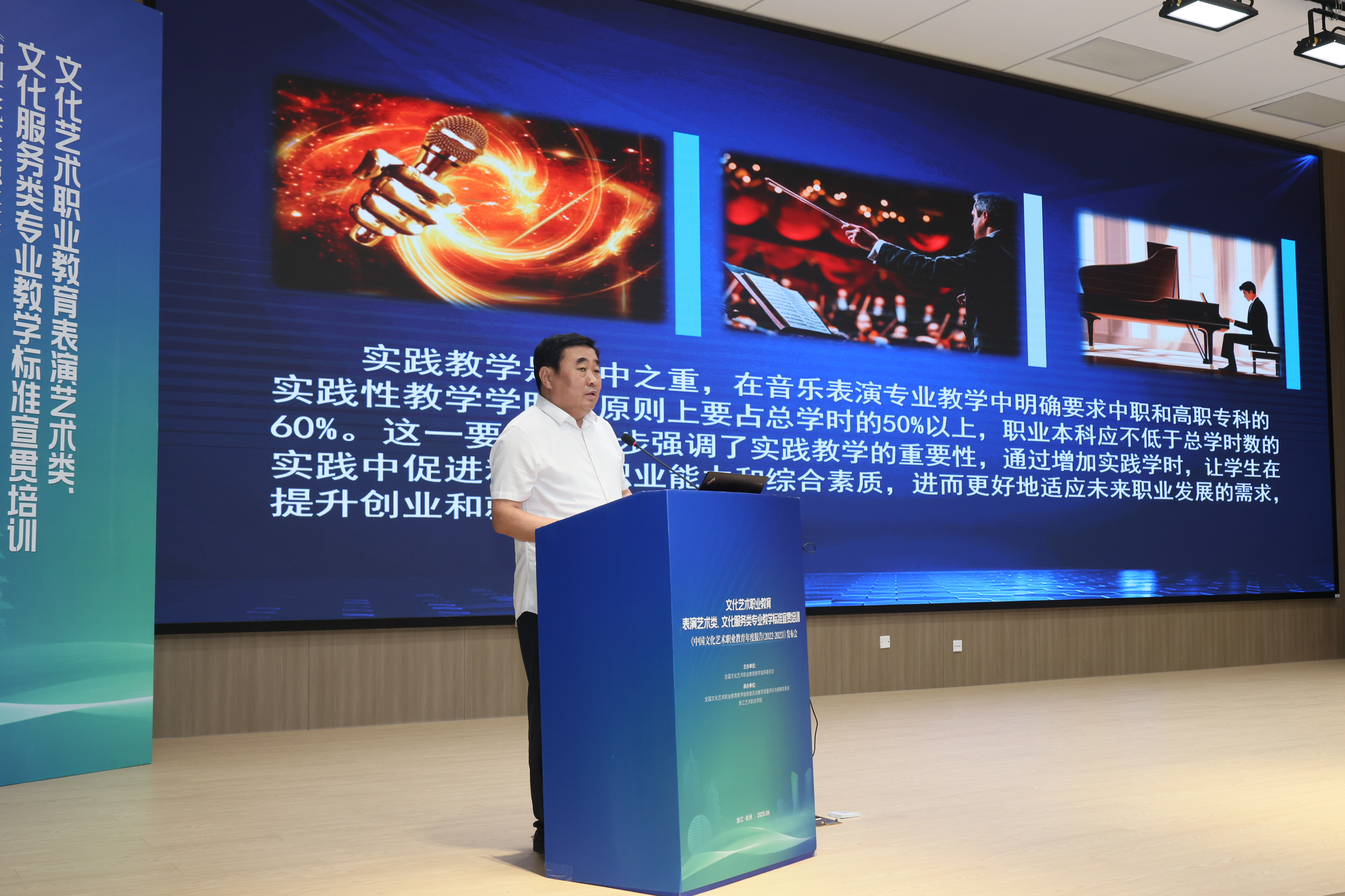 6月26日,文化艺术职业教育表演艺术类、文化服务类专业教学标准宣贯培训在杭州举办。本次培训由全国文化艺术职业教育教学指导委员会(简称“文化艺术行指委”)主办,文化艺术行指委教学质量评价与保障专委会、浙江艺术职业学院共同承办。