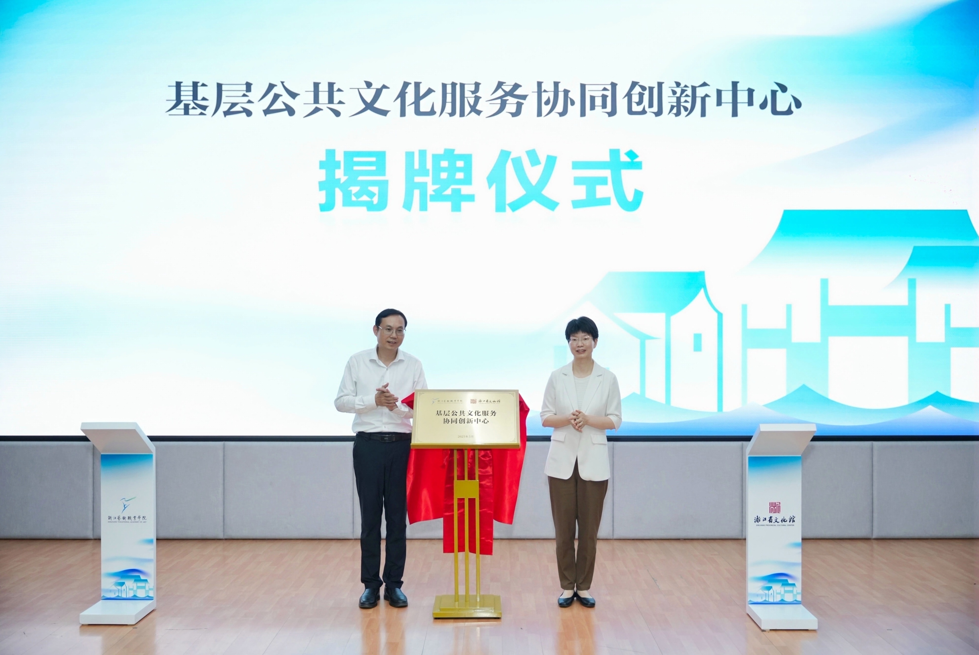 6月5日,浙江艺术职业学院与浙江省文化馆战略合作协议签约暨“基层公共文化服务协同创新中心”揭牌仪式在浙江艺术职业学院图信中心报告厅举行。浙江艺术职业学院校长施俊天与浙江省文化馆馆长阮静共同签署合作协议,并为创新中心揭牌。中心的成立标志着双方在基层文化服务领域正式开启深度合作新篇章。
