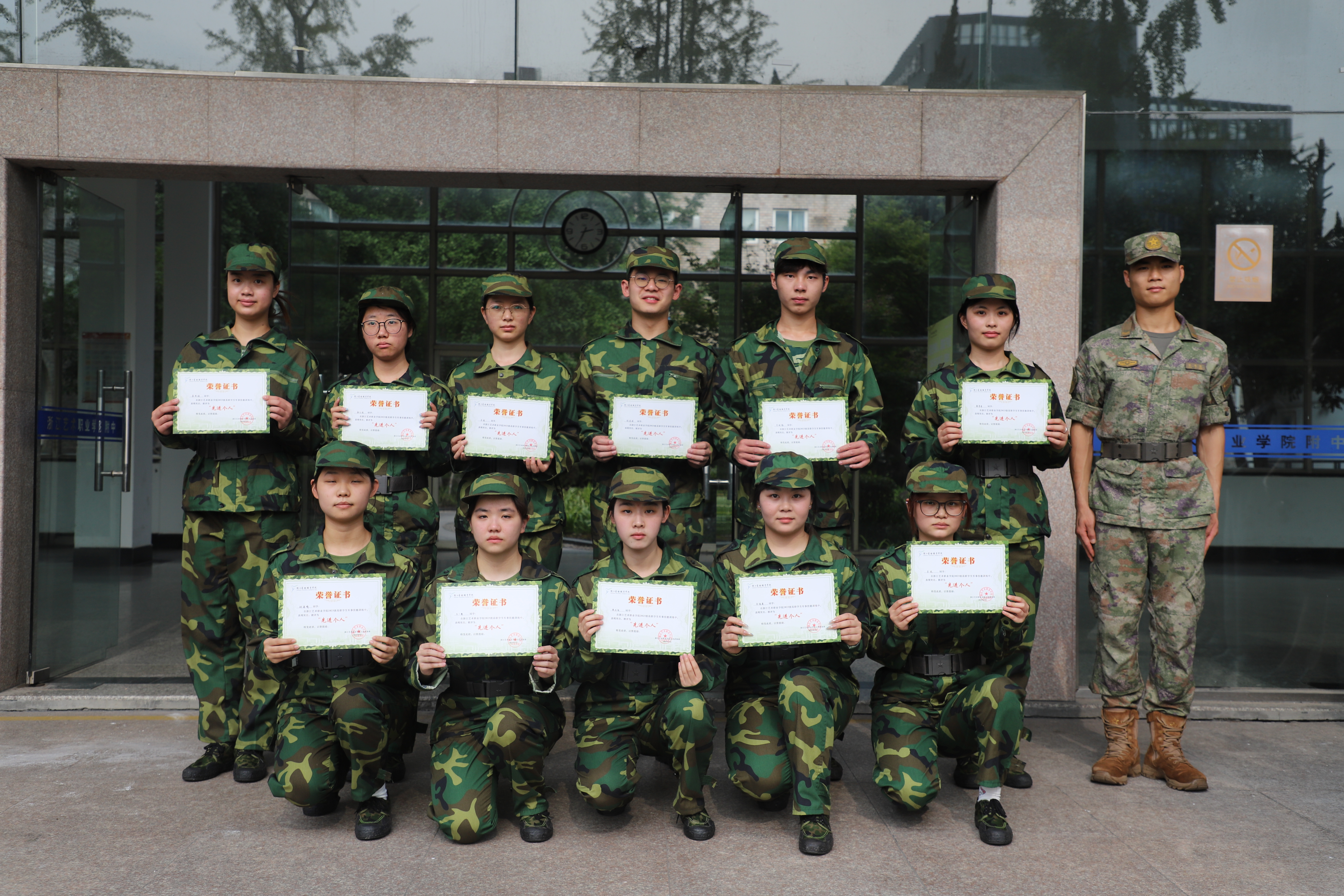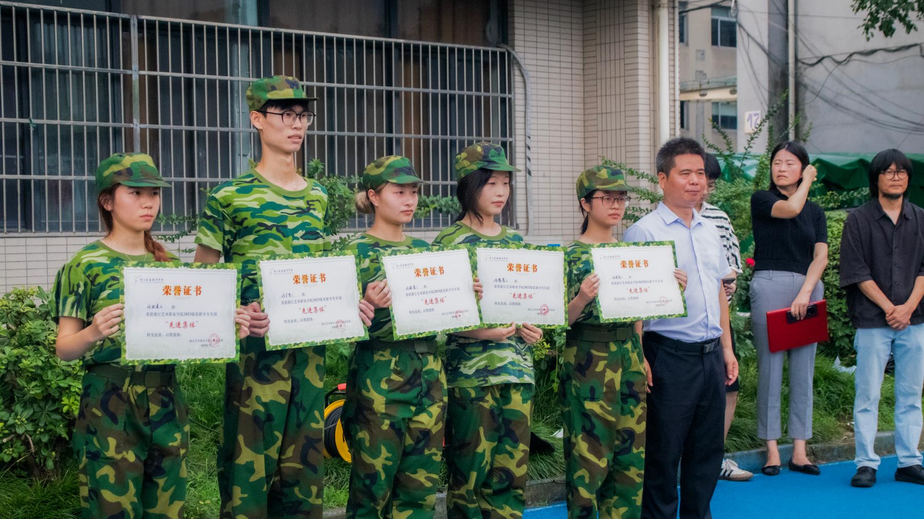 同时,还对在军训期间表现突出的同学们授予“先进个人”称号。这些先进个人在训练中有着端正的训练态度和牢固的集体意识,充分发挥模范带头作用,用实际行动诠释了浙艺学子的责任与担当。