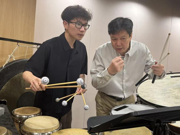 梁少垣仅执教杨茹文两个月便退休了,但那句“练着把汗练回去”,却成了他毕生奉行的修行准则。“不是真的练到没汗,是要让功夫钻进骨子里。”杨茹文至今记得,当年在黄龙洞的练功房里,他一遍遍重复着鼓点,直到鼓槌在手中稳如磐石。“得练到不累、打得出劲,才算摸到了门道。”他感慨道,“只有沉下心来钻研专业技能,才有可能真正提升它;在技能不断精进的过程中,才能达到游刃有余演奏乐器的境界。”