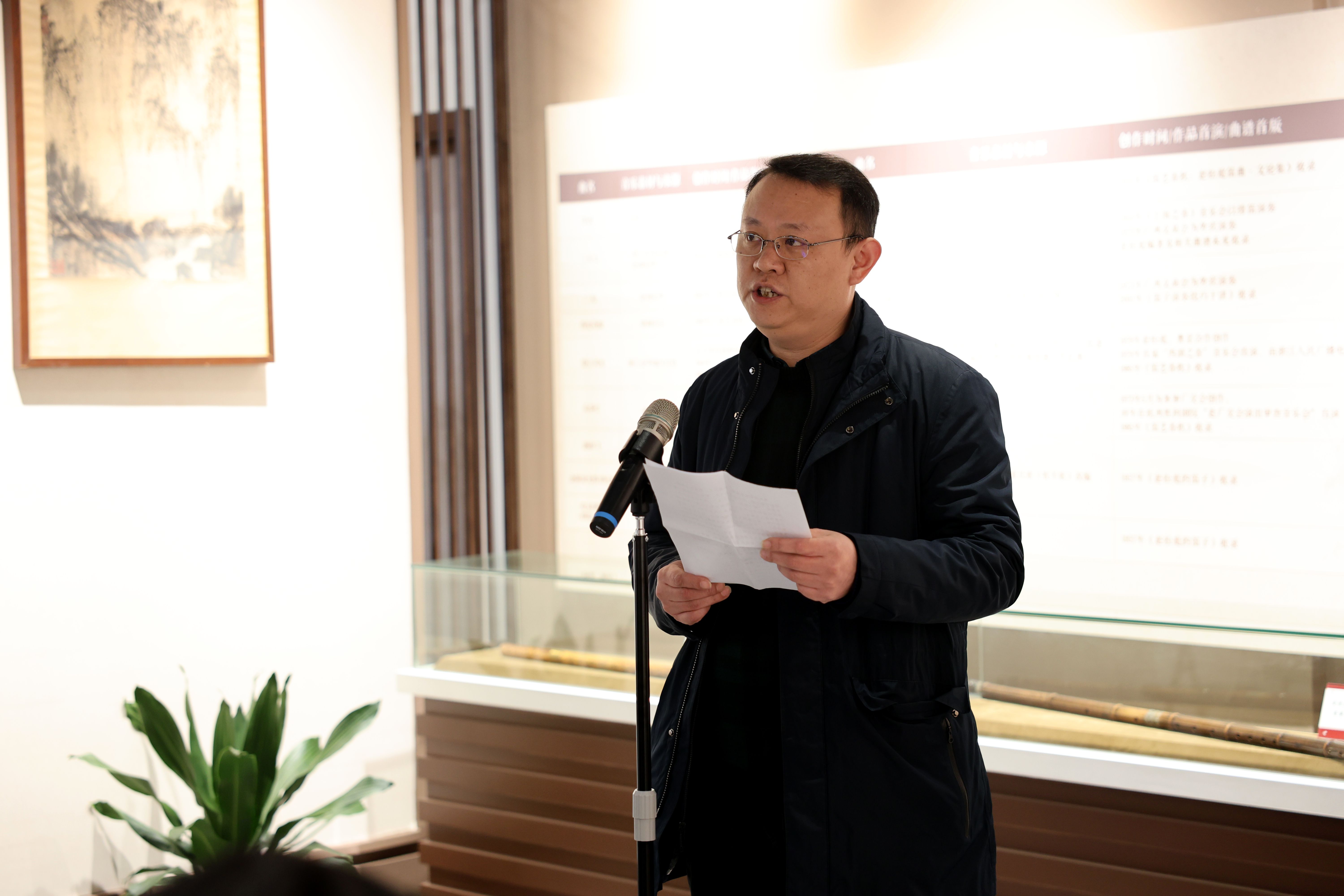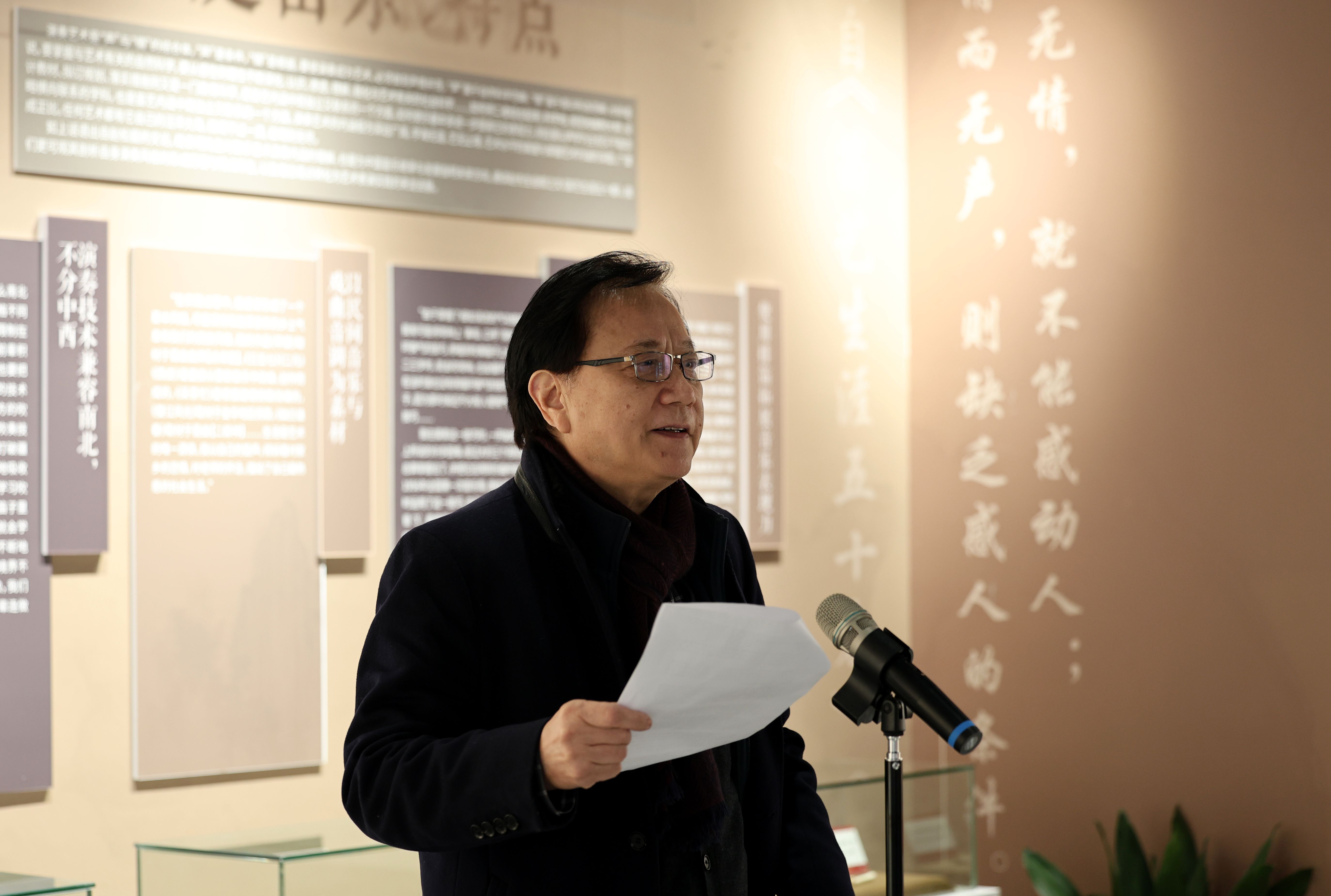 先生家属代表、外孙蔡拯教授讲述了先生淡泊名利、深耕笛艺的一生,感恩学校为传承松庭精神所做的努力,并表示将以先生为榜样,恪守“学艺先修德,练技先养精”的准则,接续传承浙派笛乐风骨。