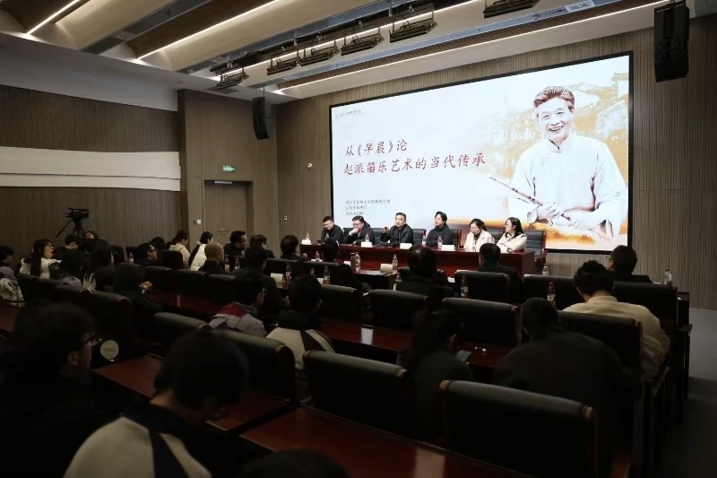 当日,以《从 <早晨> 论赵派笛乐艺术的当代传承》为主题,聚焦赵松庭的经典作品《早晨》,围绕赵派笛乐艺术的技法传承、创新发展、当代传播等展开深入研讨。上海音乐学院博士卢耀波、我校教师常轶伟、浙江音乐学院赵琦、浙江歌舞剧院民族乐团朱炜与刘松涛等青年演奏家先后发表观点,结合自身演奏与教学实践,分享了对赵派笛乐艺术技法精髓、艺术内涵的理解,探讨了新时代背景下赵派笛乐艺术的创新路径与传播方式。