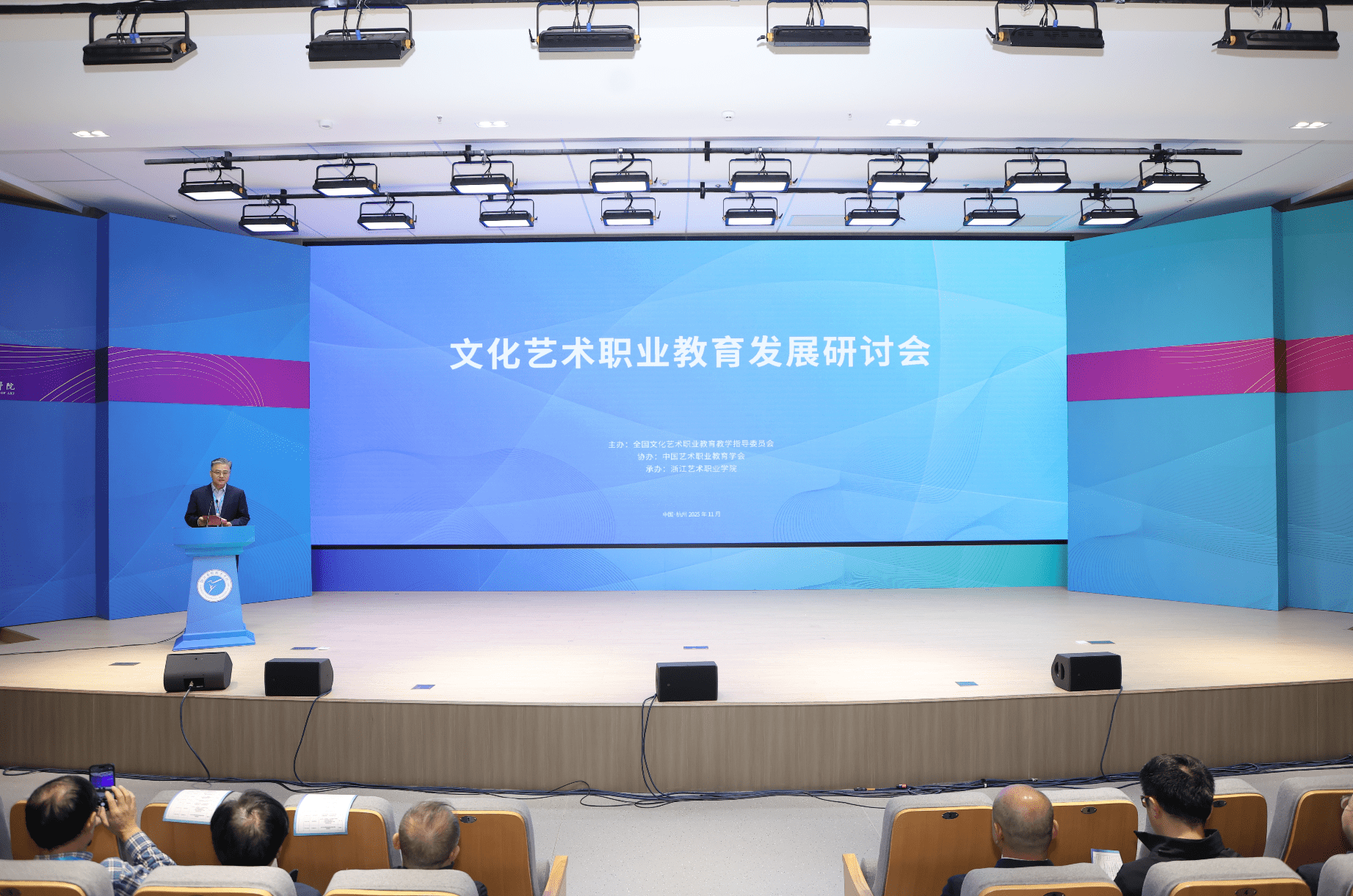 <p><span style=";font-family:宋体;font-size:14px">11<span style="font-family:宋体">月</span><span style="font-family:Calibri">7</span><span style="font-family:宋体">日——</span><span style="font-family:Calibri">9</span><span style="font-family:宋体">日,来自全国各地的百强舞者,在初冬的钱塘江畔迎来了一场艺术征程。由中国舞蹈家协会主办、浙江艺术职业学院、浙江省舞蹈家协会承办的“</span><span style="font-family:Calibri">2025</span><span style="font-family:宋体">中国顶尖舞者成长计划”全国百强集训在我校举办。百名舞蹈新锐从万余名参赛者中脱颖而出,接受顶尖导师的指导,以肢体为笔,书写青春的舞蹈篇章。</span></span></p>