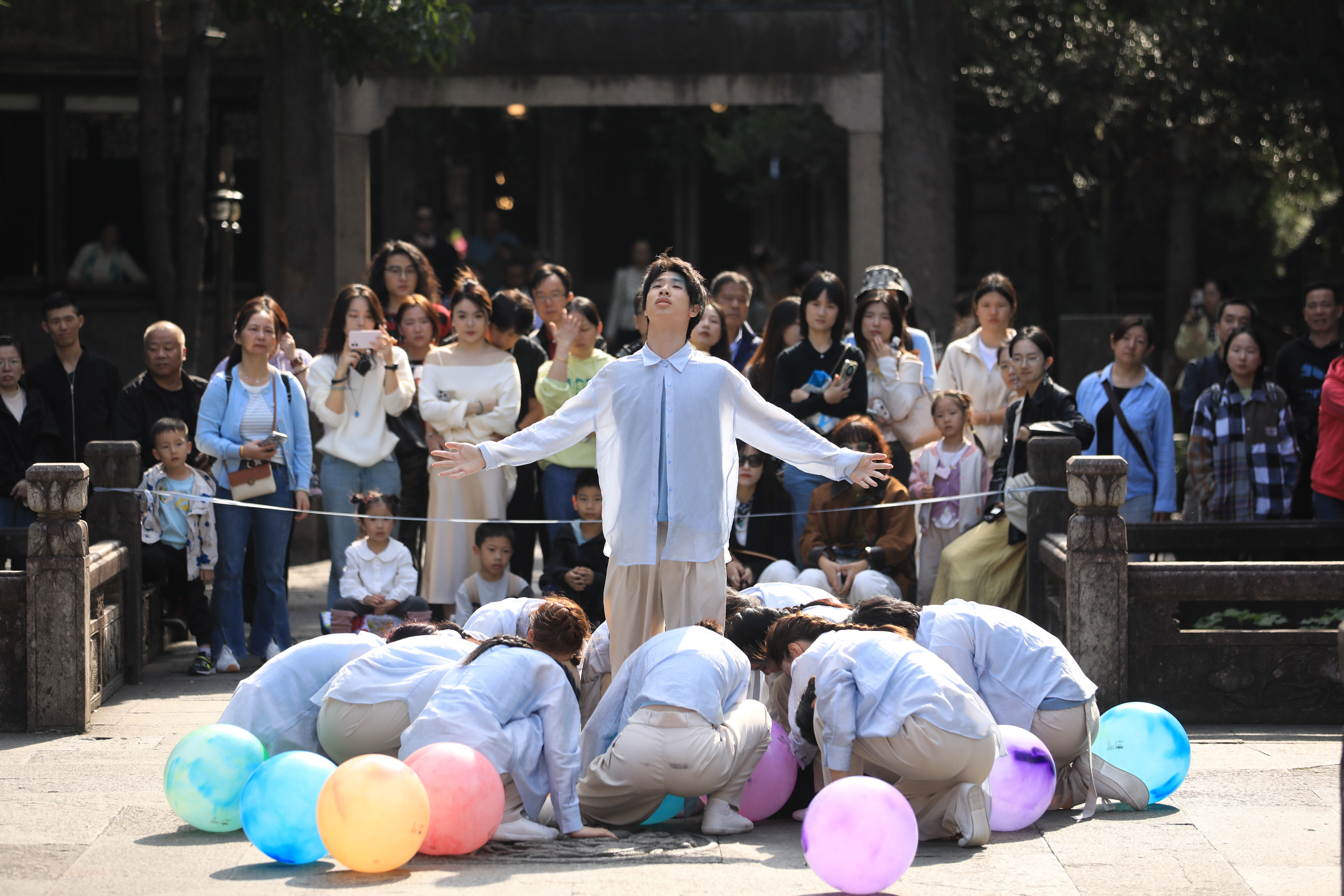 <p style="margin: 0 12px 0 0;text-indent: 0;padding: 0"><span style="font-family: 'PingFang SC';letter-spacing: 0;font-size: 14px"><span style="font-family:PingFang SC">演出中,我校师生充分展现出扎实的专业素养与灵活的应变能力:博物馆内的近距离表演,精准把控肢体细节以传递细腻情感;摇橹船上的动态呈现,克服环境干扰保持动作协调统一;廊桥、草坪等开放空间的演出,巧妙利用自然音效与光影,让舞蹈与湘湖山水融为一体。师生们的精彩表现,赢得现场观众与业内嘉宾的一致好评,成为湘湖山水间一道亮眼的</span> “艺术风景线”。</span></p>