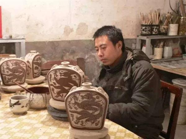 刘鹏润与磁州窑的缘分,可以说得上“波折”。他回忆儿时,跟随受邀临摹瓷器的父亲去北京。那时小小年纪藏不住的好奇心让他和正在专心临摹瓷器的父亲失散了两个多小时,险些成为“北漂”。刘鹏润的这份陶瓷缘,还有一次契机。他直言说,“父母担心做陶瓷苦,一开始不同意我做这个行业,所以我学的专业是会计。”这对一出生就和磁州窑打交道的刘鹏润来说是一个重大的变化,但是那一份缘自心底对磁州窑的热爱却丝毫没有改变。1996年,他等到了正式接触磁州窑的契机,放弃了在中外合资企业的优厚待遇回到父亲身边,帮助父亲做好磁州窑文化传承。